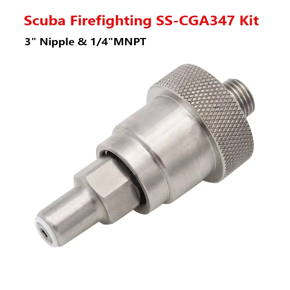 SCUBA Firefighting SS-CGA 347 Kit 1/4″ MNPT Hand tight Nut and 3″ Nipple -Diving tank cylinder